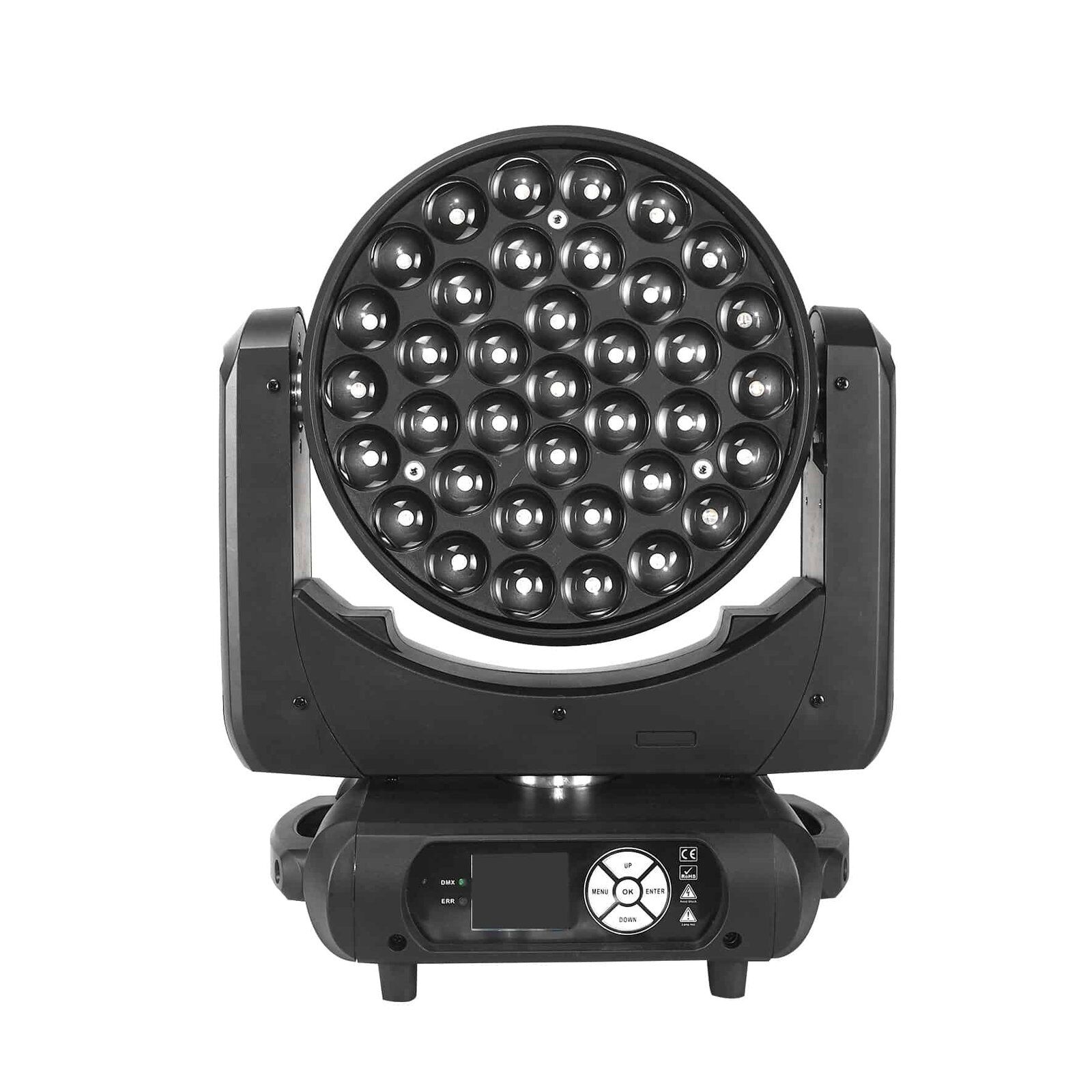 AL3715WZ es una potente luz de zoom de cabeza móvil LED RGBW de 37x15W con efectos avanzados de anillo de píxeles y zoom motorizado suave, perfecta para iluminación de escenarios, eventos e iglesias.