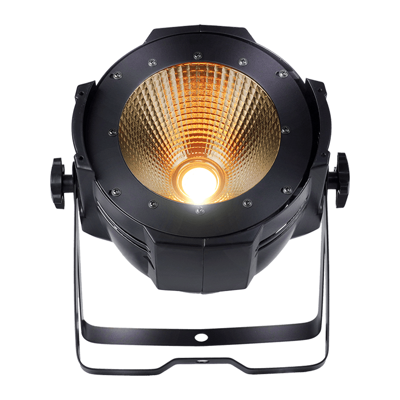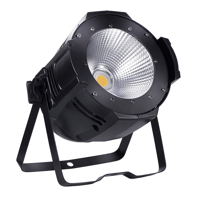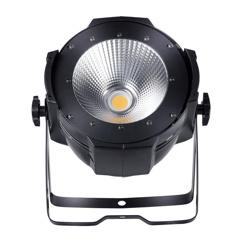 100W LED COB Par Light - Potente solución de iluminación interior con mezcla de colores RGBW y regulación sin parpadeos. Con tecnología COB para un brillo uniforme y control DMX. Ideal para escenarios, bodas, estudios y discotecas.