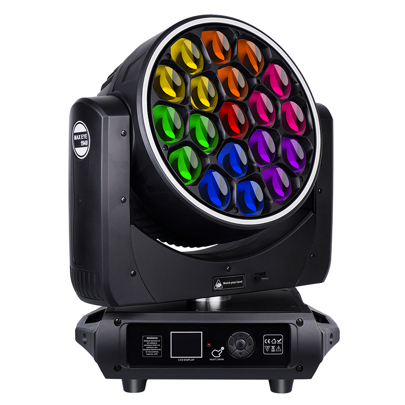 The AL1940WZ is a professional-grade 19x40W LED Bee Eye Moving Head Light featuring pixel-level control, infinite front lens rotation, wide zoom, and halo ring effects. Designed for versatile stage use — from narrow beams to soft washes and stunning kaleidoscopic visuals — it excels in concerts, events, clubs, and broadcast environments.