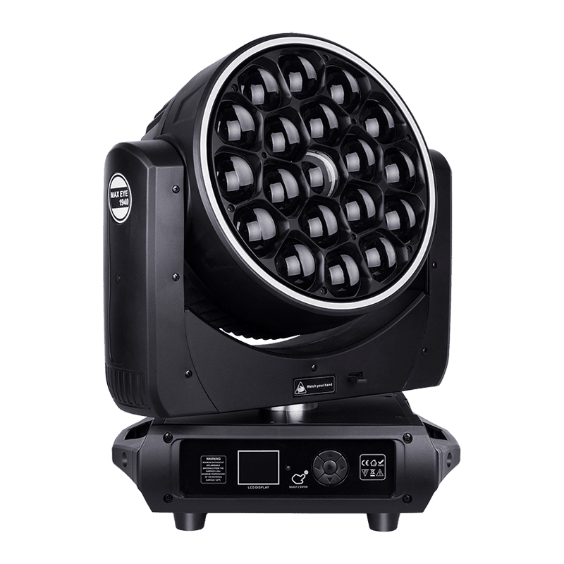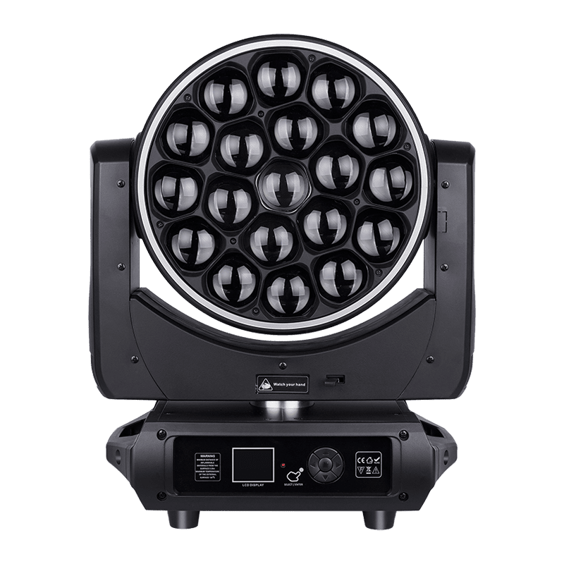 The AL1940WZ is a pixel-controlled 19x40W Bee Eye LED Moving Head Light with zoom, kaleidoscope effects, halo ring, and infinite lens rotation. Ideal for concerts, stages, and pro shows.