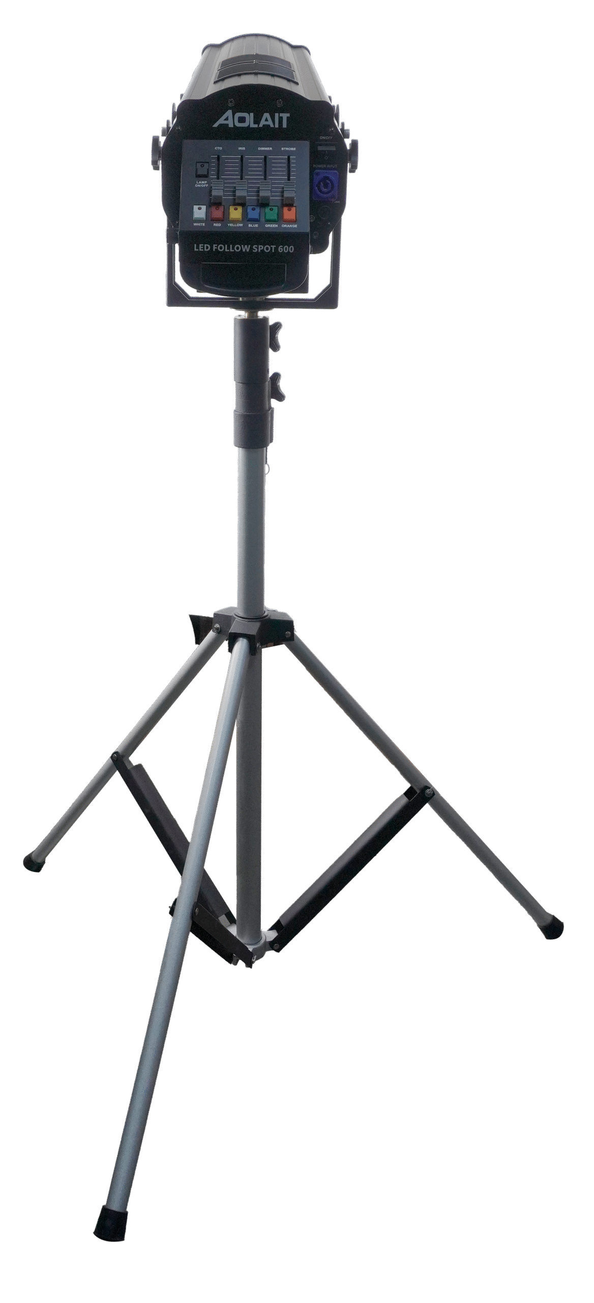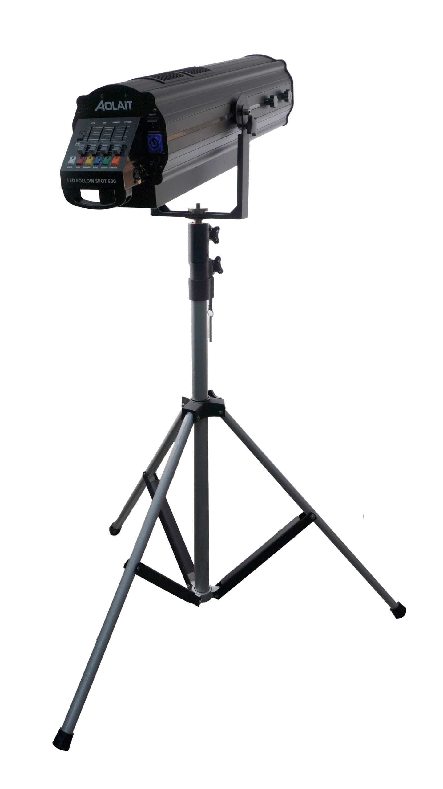 600W LED Follow Spot with five colors + white, adjustable color temperatures (3200K / 4500K / 5600K), beam angle 8°–12°, 0–100% linear dimming, and projection distance of 10–60 meters. Features efficient heat dissipation, overheat protection, and durable aluminum body. Perfect for stage performances, film & TV studios, outdoor events, and exhibitions.
