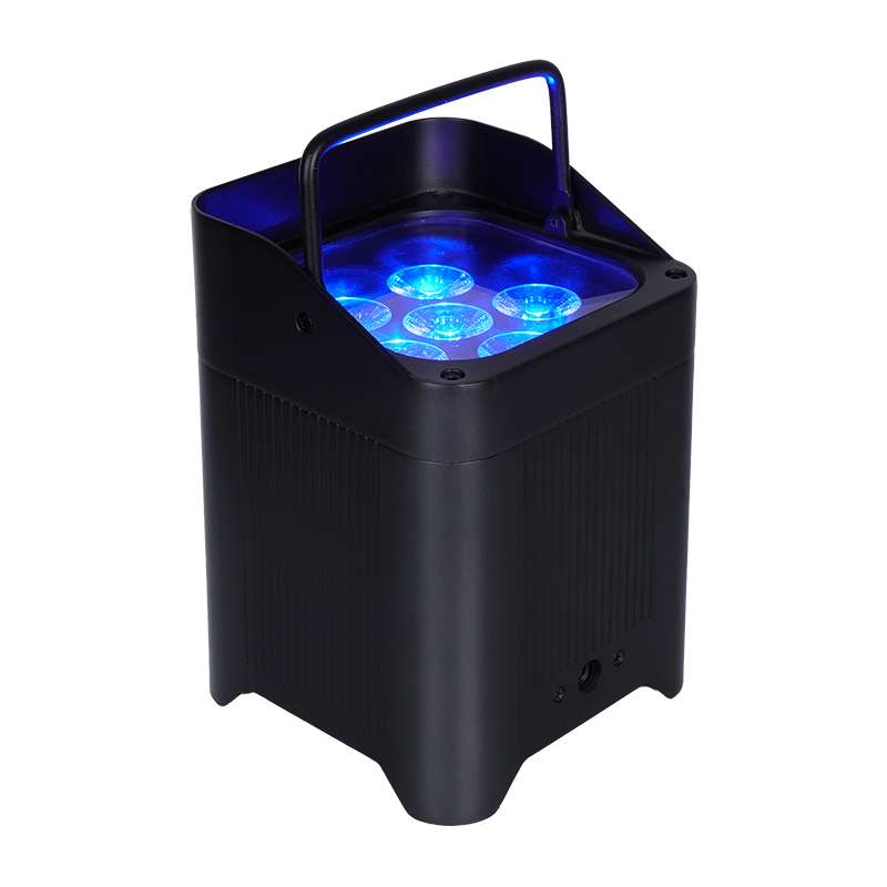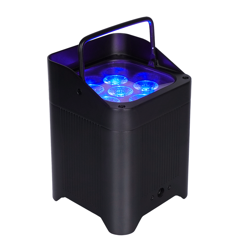 ALB6C is only one-hand size wireless led par, support WIFI App control(IOS AND Andriod), equips 6PCS 18W RGBWA+UV LEDs.