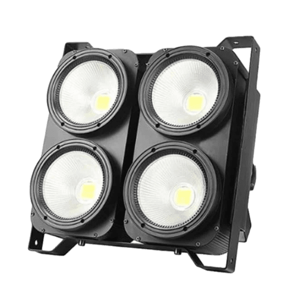 A AL1004BL é uma luz profissional de LED de 4x100W para interior com LEDs COB, ângulo de feixe de 60°, temperaturas de cor duplas e controlo DMX - perfeita para palcos, clubes e eventos.